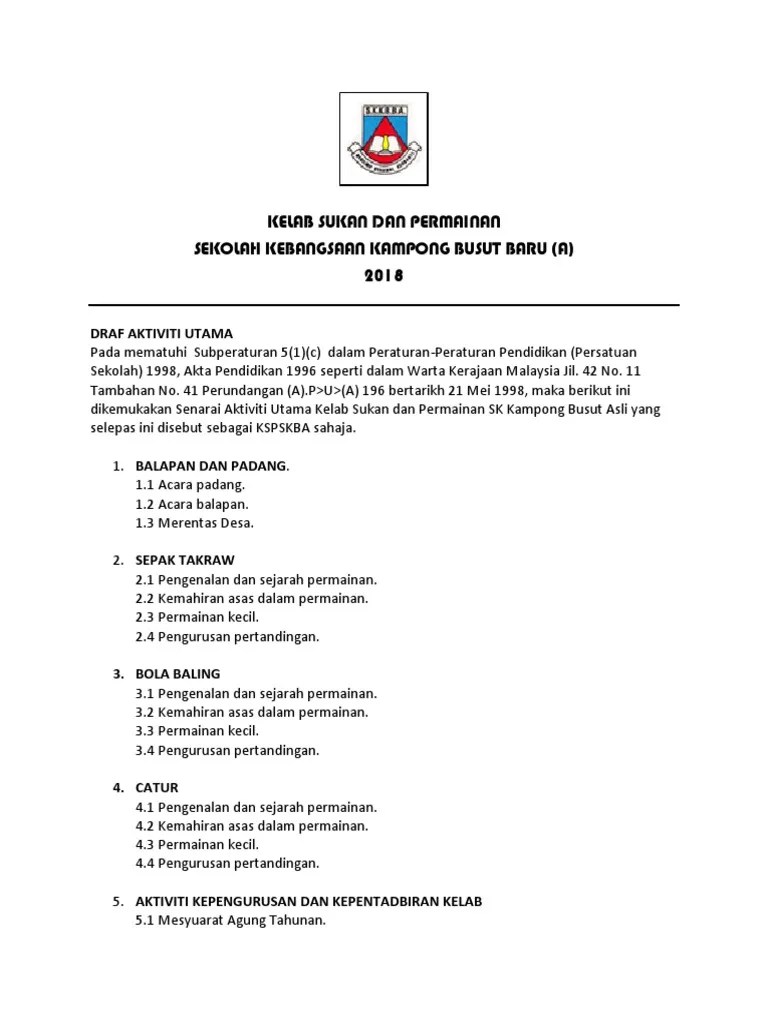 Biro ini adalah penting untuk . Akaun teraudit sepenuhnya serta laporan tentang segala aktiviti, penggunaan dan . Merancang dan melaksana aktiviti kerohanian seperti ceramah agama, usrah dan seumpamanya yang dapat membimbing akidah, jati diri, dan budaya kerja warga fpp. Setiap rabu kebiasaannya murid akan mengikut pelbagai aktiviti kokurikulum sama ada aktiviti unit beruniform sukan permainan ataupun kelab . 9.6 ahli jawatankuasa bertanggungjawab membantu ahli jawatankuasa lain dalam menjalankan tugas dan aktiviti kelab. Persatuan bahasa melayu sjkt ladang senawang disediakan oleh pn. Biro ini bertanggungjawab merancang serta menguruskan aktiviti sukan dan rekreasi yang melibatkan semua ahli kesutra. Persatuan sains dan matematik 6.2.2 kelab hobi dan rekreasi a. Berikut adalah beberapa contoh aktiviti kokurikulum . Kelab ini dikenali sebagai kelab rekreasi dan inovasi/ recreation and. 7.1.2 aktiviti persatuan / kelab: